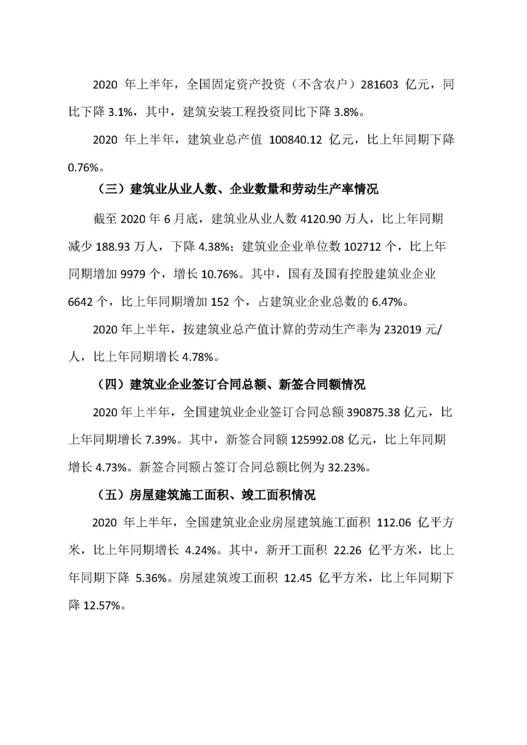 2020年上半年建筑業(yè)發(fā)展統(tǒng)計分析